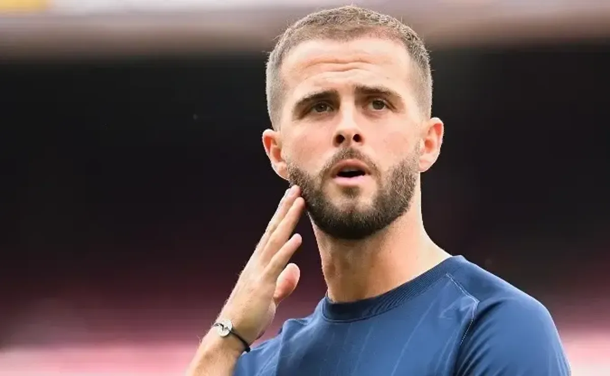 33-летний плеймейкер Миралем Пьянич внимательно следит за игрой «Ромы» под руководством Жозе Моуринью.