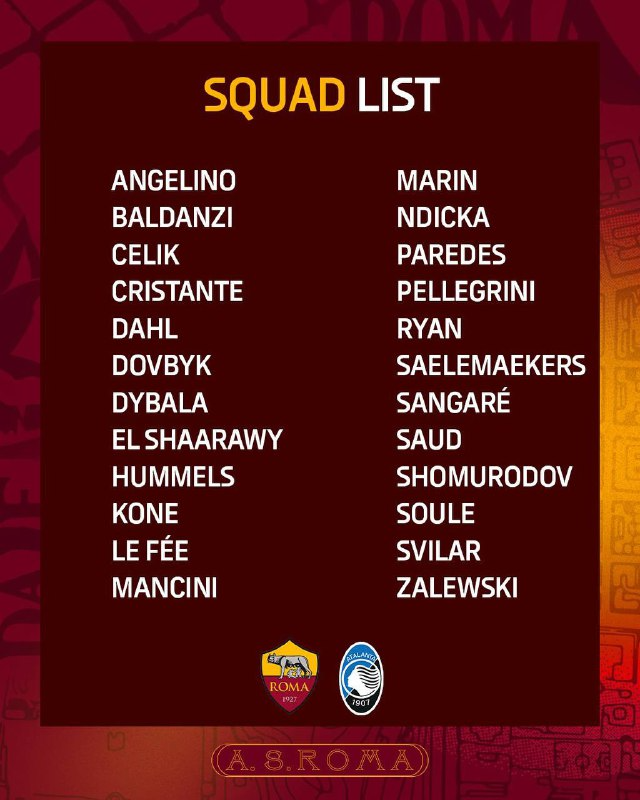 Заявка на матч с "Аталантой"