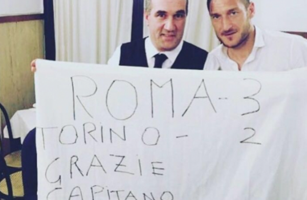 Любопытно, что в ресторане Тотти приветствовали вывеской «Рома» 3:2 «Торино», спасибо, капитан».