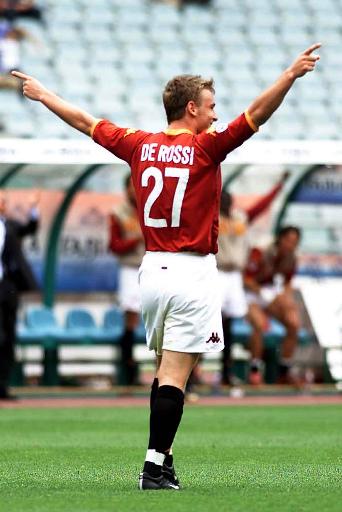 Дзампа называет его "Моцартом" - из-за таланта, проявившегося так рано, и из-за то, что отец мальчика - тренер Примаверы, во многом помог ему сделать первые шаги в футболе. Хотя, по правде говоря, именно в Примавере Альберто никогда не был тренером своего сына. Особенно страстная любовь трибун к Де Росси связана даже не с великолепной игрой и достойным поведением на поле. Де Росси, как никто другой, умеет радоваться и переживать голам "Ромы", независимо от того, находится ли он на поле или на скамейке. Фотография, запечатлевшая его восторг от гола Мансини в дерби (Даниэле тогда разминался на бровке) обошла всю Италию и навсегда останется в сердцах Курвы - ведь он - один из нас. Де Росси, центральный полузащитник, родился 24 июля в Остии, пригородном районе Рима, известном своими пляжами. Стал известен в команде Ostia Mare и в 1996 куплен для "Ромы" Бруно Конти. Впервые за основную команду Де Росси сыграл в 2000 году, в Берлине в товарищеском матче против "Галатасарая". Его первой официальной игрой в Лиге Чемпионов стала встреча с "Андерлехтом" в сезоне 2001-2002. В 2002 году кубковом матче против "Триестины" он даже пробил свой первый пенальти, который реализовал на высшем уровне, продемонстрировав великолепную индивидуальность. Именно после того матча Капелло сказал: "Он впечатлил меня, мы удержим его в команде". Об этих словах вспомнили летом 2003, когда "Кьево" отчаянно пыталось заполучить Де Росси в обмен на защитника Сборной Италии Легротталье. Именно отказ отдавать юношу ознаменовал провал переговоров. Легротталье перешел в "Ювентус". Те, кто хорошо знают Де Росси, говорят, что он уже "мужчина", он серьезен на тренировках и дисциплинирован на поле. Тренер национальной юношеской (до 19 лет) сборной Берреттини (Berrettini) уже тогда утверждал о сходстве игровых характеристик Де Росси и Кристиана Дзанетти. Уже летом 2002 года Капелло заговорил о введении Даниэле в основной состав: "Де Росси больше не будет играть в Примавере. Он будет эффективно действовать на месте Ассунсао". Но обещание свое Дон Фабио не сдержал. Де Росси тренировался с основной командой, но за весь сезон выходил на поле в матчах Серии А всего 4 раза. Но уже в первой своей игре на Олимпико в основном составе Де Росси произвел настоящий фурор. Его необыкновенный гол, забитый могучим ударом с 35 метров, заставил вскочить на ноги самого Сенси: "Кто этот мальчик?!!" Олимпико был покорен сразу, и чем дальше, тем более страстной становилась любовь к нему Курвы Суд. В последнем матче "Ромы" того сезона, ознаменовавшемся проводами великого Алдаира, Де Росси снова забил, сравняв счет в матче с "Аталантой". Увы, бергамаскам удалось тогда победить. В следующем сезоне с ним были связаны большие надежды, которые получили свое воплощение уже в матче с "Вардаром" - первым соперников римлян в Кубке УЕФА. Великолепная игра и снова совершенно потрясающий гол Даниэле: он забил так, как умеет забивать только один человек в нынешней "Роме" - Франческо Тотти. Легким и изящным движением перекинул мяч через вратаря - знаменитый "палонетто" -"удар-ложечка", вверг трибуны в экстаз. А затем был матч с "Пармой", выигранный исключительно усилиями Даниэле, огранизовавшего оба гола "волков". Римские газеты захлебывались в дифирамбах, называя юного игрока, в частности, "маленьким некоронованным императором Рима" (по аналогии с "коронованным" Тотти
